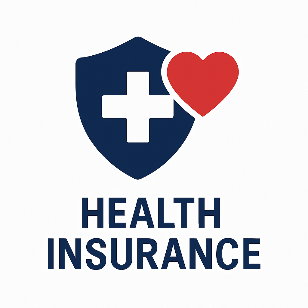 Icon of a dark blue shield with a white medical cross, a red heart overlapping the right side of the shield, and the text 'HEALTH INSURANCE' below.